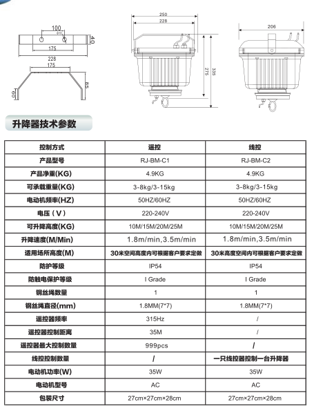 升降燈/燈具升降器/吊燈升降器RJ-BM-C 3-15kg
